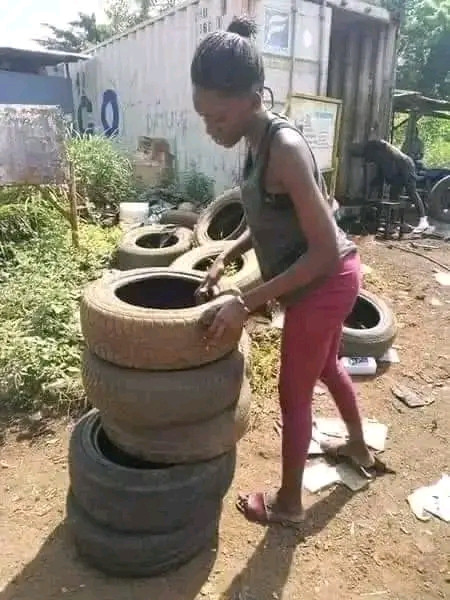 Cette magnifique Camerounaise talentueuse fabrique des superbes table et chaise a partie des pneus usé waouh bravo ✨️✌️