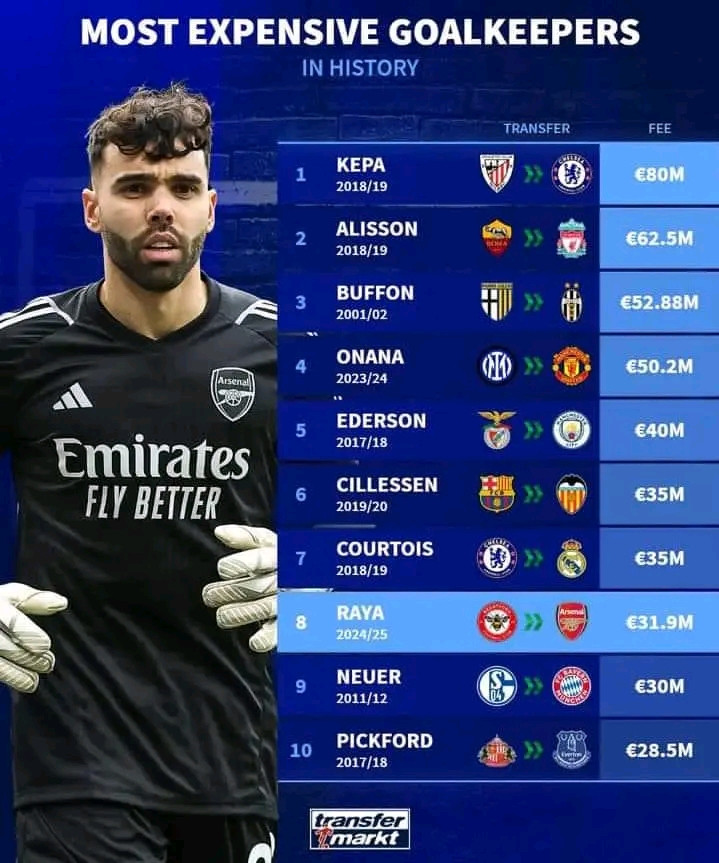 JE PARTAGE ÇA car j'ai été surpris de constater que dans le TOP 10 des gardiens les plus chers de l'histoire Andre Onana est le seul africain présent, et si il faut même parler comme les Ra"cist.es je dirais qu'il est le seul Noiir parmi les très grands 💥 et si il était même d'un autre continent c'est clair que sa valeur serait 2 fois plus élevé que ca✅✅