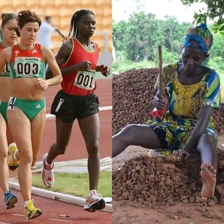 Elle s'appelle Domingas Tonga qui représentait la Guinée-Bissau en compétition internationale, Elle a été en Europe, au ******* on, en Angleterre pour représenter son pays ojodui elle casse des pierre pour survivre ....