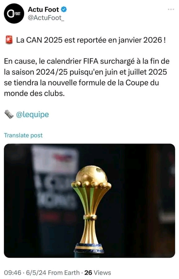 « L'annonce des dates de la CAN 2025 a pris beaucoup plus de temps que prévu, car des discussions complexes et parfois difficiles ont eu lieu avec diverses parties intéressées, à la lumière des calendriers de matches internationaux et nationaux très chargés. La CAF s’engage à protéger et à faire progresser les intérêts des joueurs africains évoluant dans des clubs de football en Europe et dans le monde. La CAF s'engage également à établir des relations mutuellement bénéfiques avec l'ECA, l'UEFA, d'autres confédérations de football et la FIFA. Nous continuerons à faire des progrès significatifs pour développer et garantir que le football africain soit compétitif à l’échelle mondiale et parmi les meilleurs au monde ».