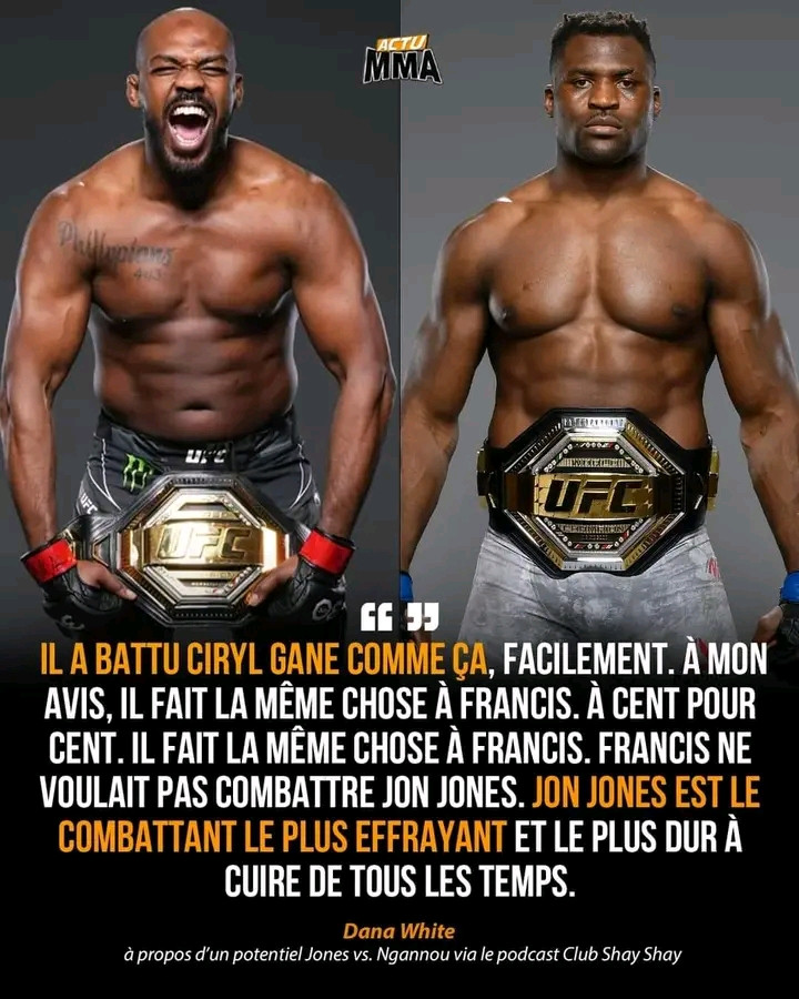 🔴 #MMA 🤼♂️ Dana White voit Jon Jones battre Francis Ngannou s'ils devaient s'affronter. 🥊