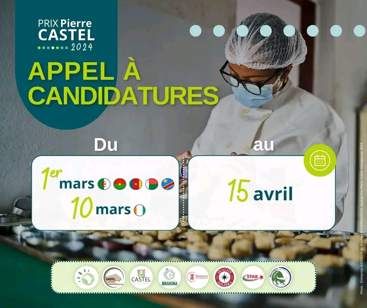 Dès le 1er mars, les inscriptions au Prix Pierre Castel 2024 seront ouvertes en Algérie 🇩🇿, au Burkina Faso 🇧🇫, au Cameroun 🇨🇲, à Madagascar 🇲🇬 et en République Démocratique du Congo 🇨🇩. Pour les entrepreneurs ivoiriens, elles débuteront le 10 mars 🇨🇮.