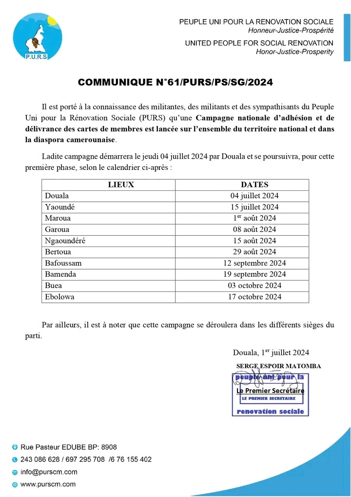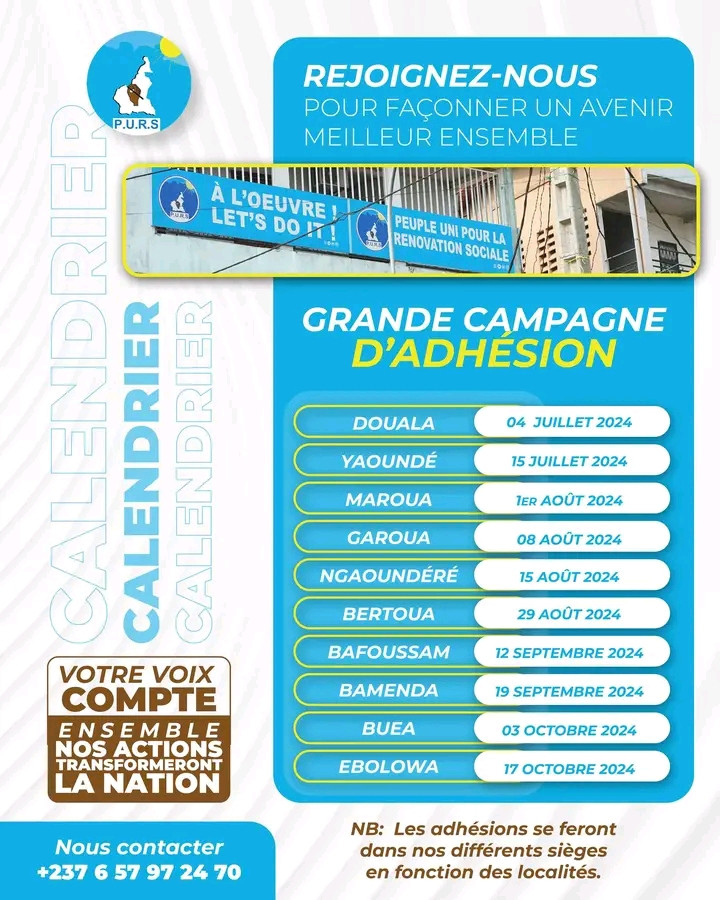🚀 Lancement de la Campagne Nationale d'Adhésion et de Délivrance des Cartes de Membres du PURS ! 🇨🇲
