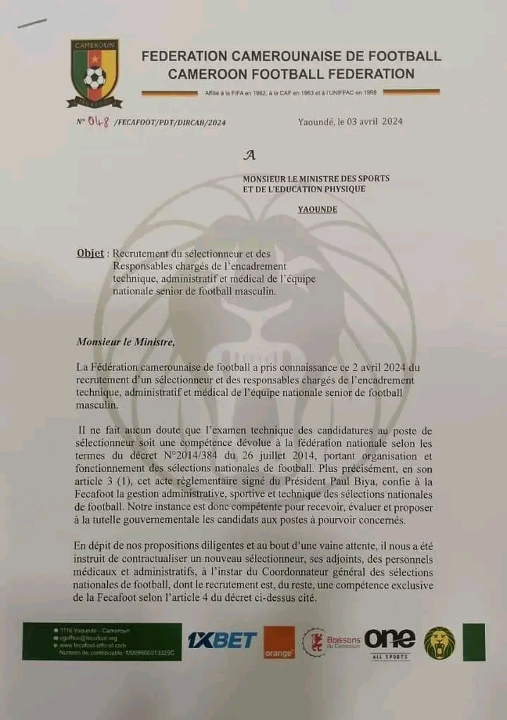 🔥 Ce plaidoyer illustre la volonté de dépasser les tensions entre la Fécafoot et le staff des Lions.