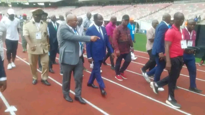 🔴 Le Pr Narcisse Mouelle Kombi et son équipe du MINSEP sont allés visiter les installations du stade Japoma à quelques jours du début des Championnats d'Afrique d'athlétisme. 🇨🇲