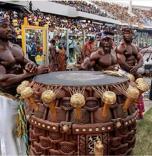 ✍️ In Akan culture - Ghana 🇬🇭 Fontomfrom ( Talking Drum) is the biggest drum of the drum ensemble. It is mostly used to communicate royal messages.