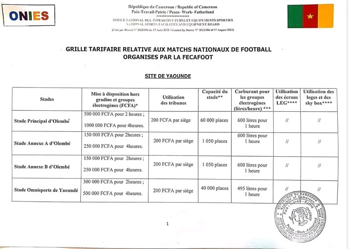 La transparence dans les chiffres des recettes des stades est à la mesure de la Fecafoot.