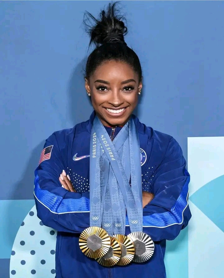 Elle gagne les sélections américaines et gagne encore deux médailles d'or 🏅 aux JO 2024 et elle est encore dans trois autres finales. A 27 ans elle devient la seule gymnaste de l’histoire avec autant de médailles devant la Roumane Nadia Comaneci...