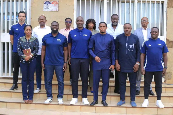 Le Président de la #Fecafoot s'est entretenu jeudi matin avec les membres d'une la délégation de la FIFA conduite par l'ancien international ghanéen Anthony BAFOE, spécialiste haute performance (HPS) de la FIFA, accompagné de Franciny SAMBA du Bureau régional de la FIFA ; Etienne SOCKENG, consultant technique régional et Jorge REISS, Fifa Talent Coach (résident au Cameroun).