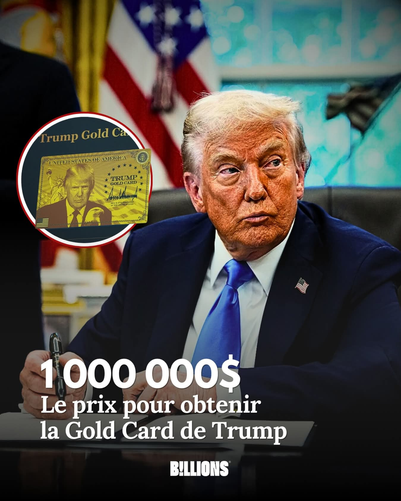 Le Président Donald Trump vient de lancer la Trump Gold Card, un nouveau visa réservé aux étrangers fortunés prêts à investir au moins 1 million $ pour s’installer aux États-Unis. 🇺🇸