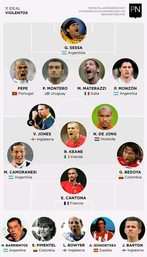 11 Idéal des joueurs les plus violents selon La solo Fútbol Maldonado.