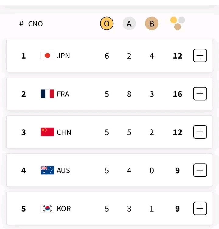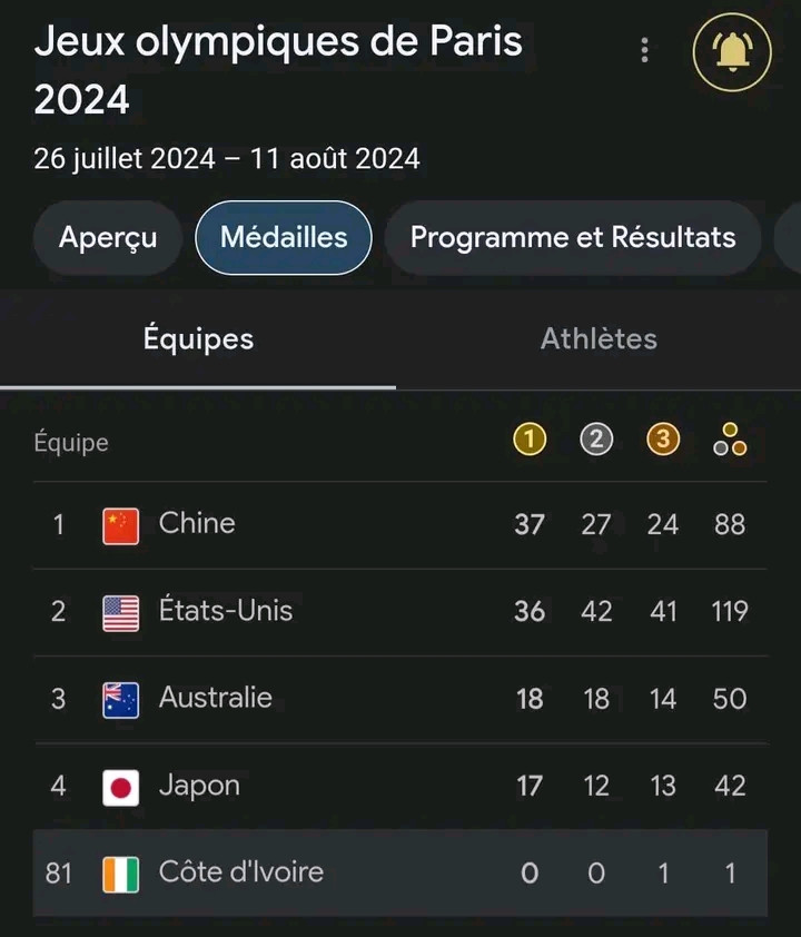 Point des médailles 🏅 🏅 🏅 olympiques à ce jour.