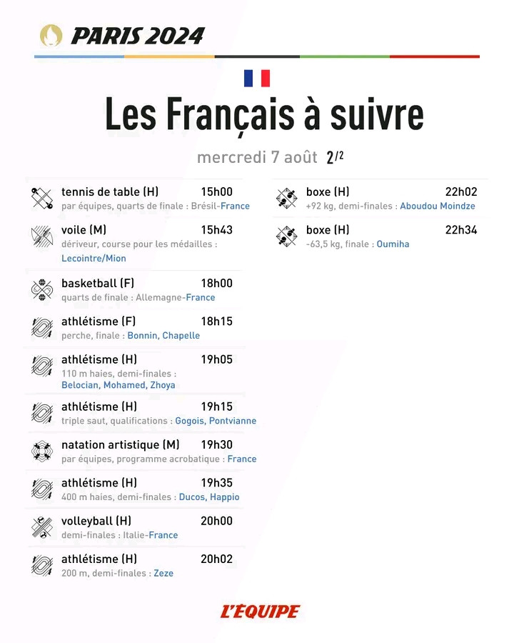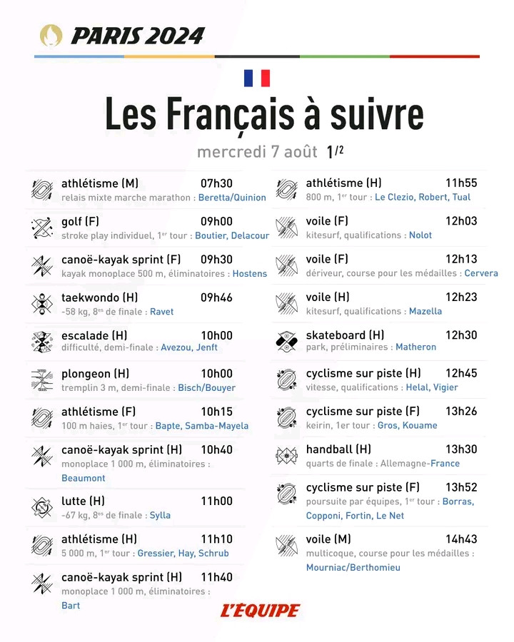#Paris2024 sur #CrtvSports , demandez le programme de ce jeudi 1er Août !