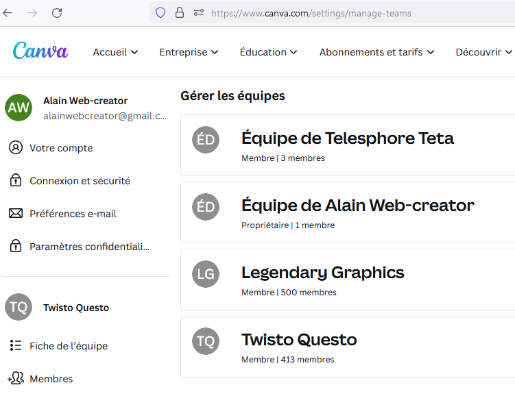Nouveau lien pour rejoindre une autre "équipe prémium" pro de canva pro: