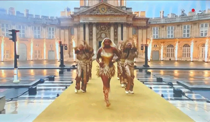 L’artiste franco malienne 🇲🇱🇫🇷 l’a fait entourée d’une troupe de danseurs ainsi que la fanfare royale 😭😭🙏🏽🙏🏽
