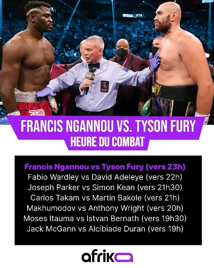 Heure du combat [Francis Ngannou vs. Tyson Fury] - aux alentours de 23h.(demain)