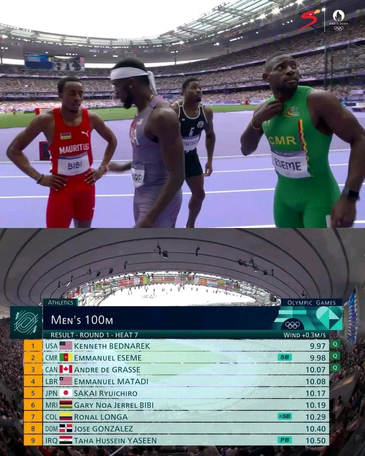 Emmanuel Eseme a terminé 2ème de sa série en 100 mètres avec un temps de 9'98". Il passe en demi-finales.