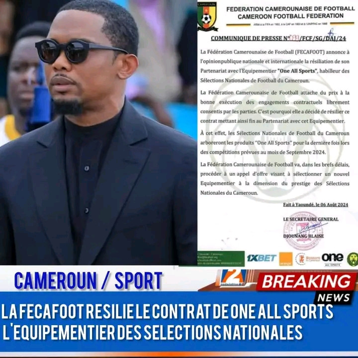 #Cameroun #Fecafoot FIN DE CONTRAT AVEC ONE ALL SPORT, L'EQUIPEMENTIER DES SELECTIONS NATIONALES AU CAMEROUN