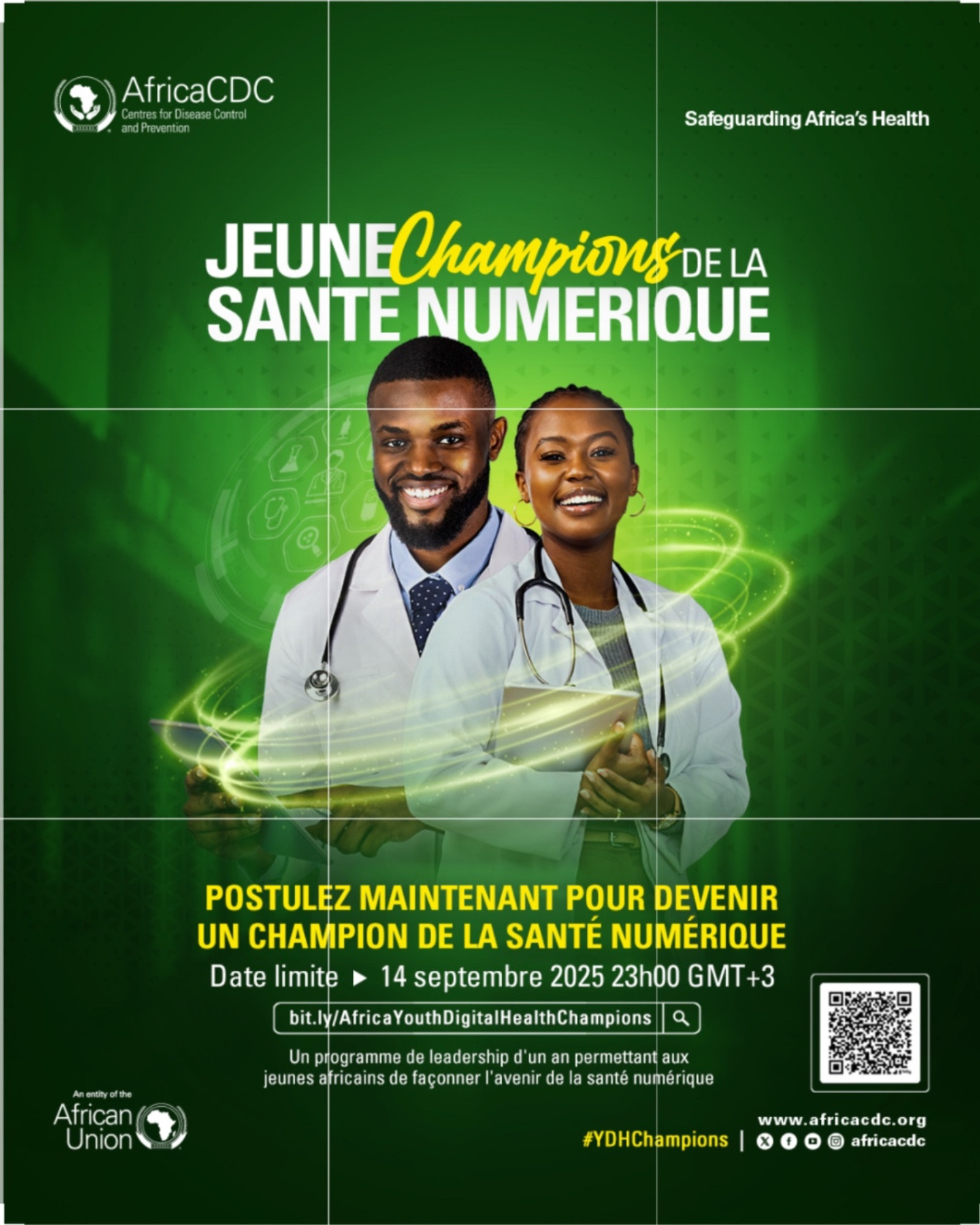 Africa CDC invite les jeunes leaders africains âgés de 18 à 35 ans à postuler pour la promotion 2025 des Jeunes Champions de la Santé Numérique (Youth Digital Health Champions).